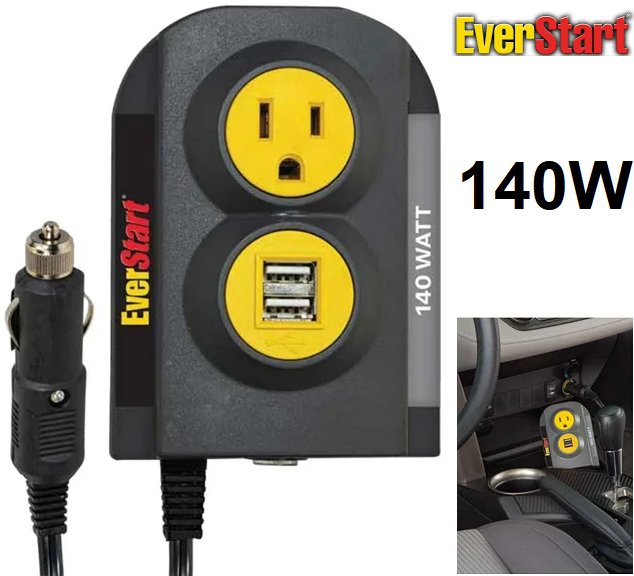 EverStart Car Power Inverter - 140w - grey / yellow (model: pci140e)