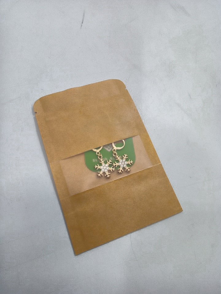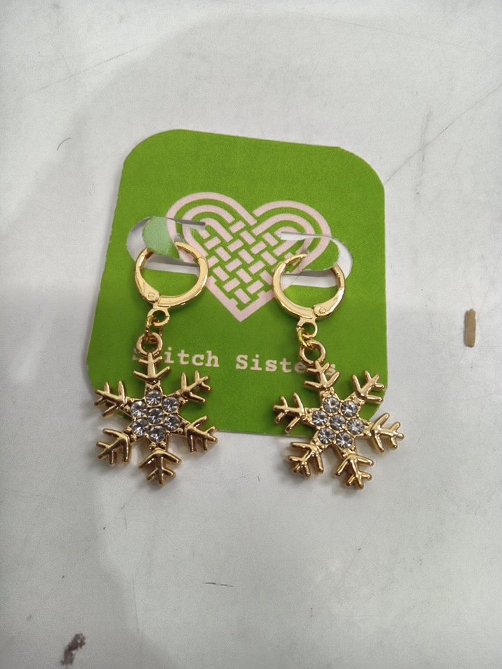 1PR WOMENS stitch sisters dangle snowflake earrings - 32mm - gold tone