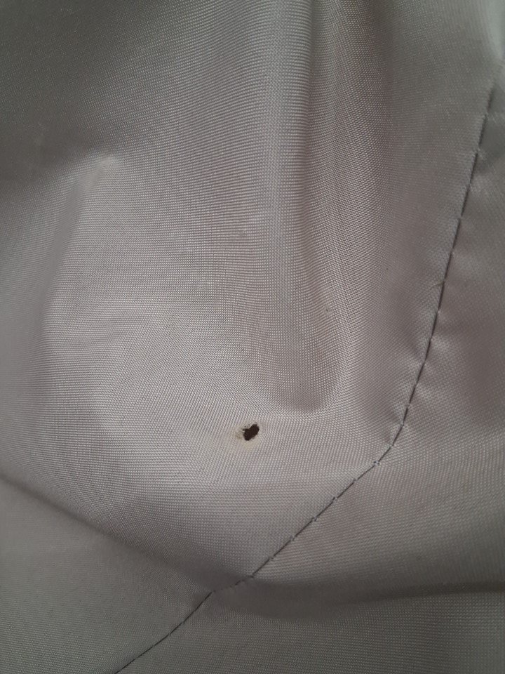 item has a small hole on the carry bag and on the net of the crib from previous use