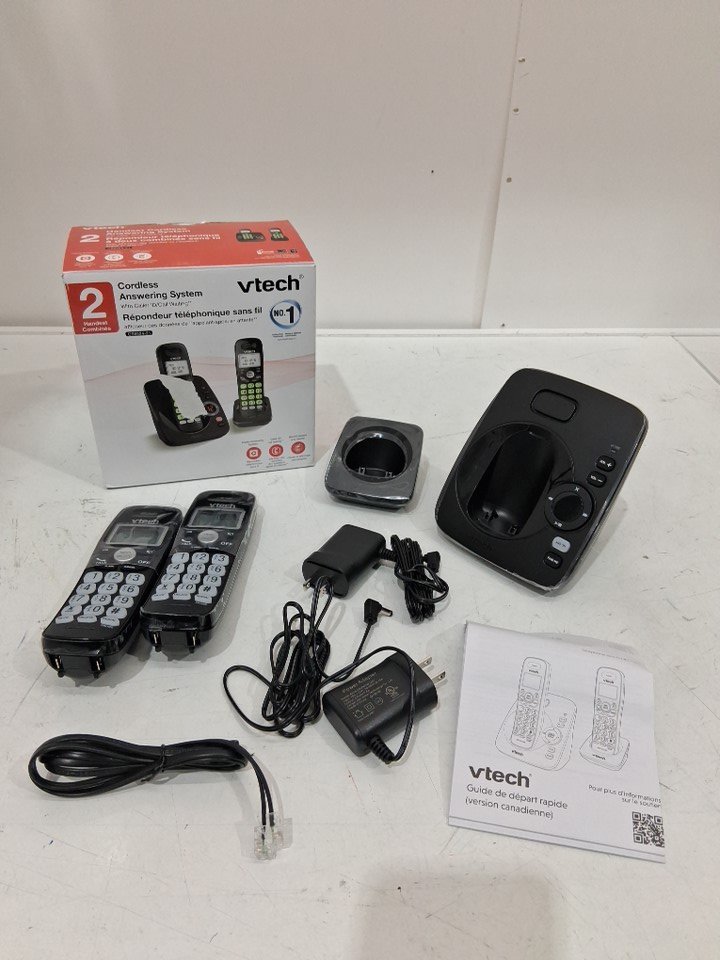 VTECH DECT 6.0 2-HANDSET CORDLESS HOME PHONE answering SYSTEMs WITH DIGITAL ANSWERING MACHINE & BACKLIT KEYPAD & DISPLAY - caller id/call waiting display, 14 minutes recording time, stores 30 calls - BLACK - (MODEL: CS6224-21)