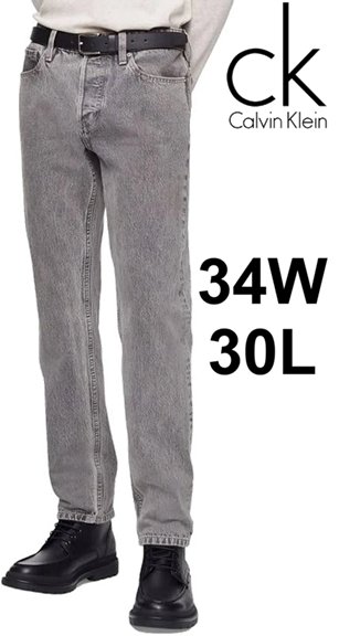 MENS CALVIN Klein straight droit denim jean 34w, 30l - grey