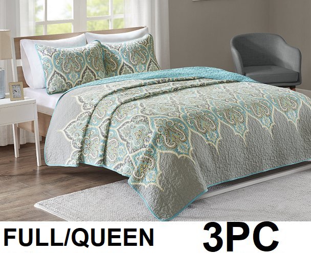 3PC COMFORT SPACES QUILT SET WITH ONE QUILT AND TWO SHAMS, FULL/QUEEN - MULTI (MODEL: CS14-0807-1)