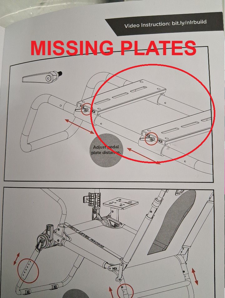 Item appears to be missing plates for pedals, bolts, washers, & nuts. Item has some scuffs/scratches.