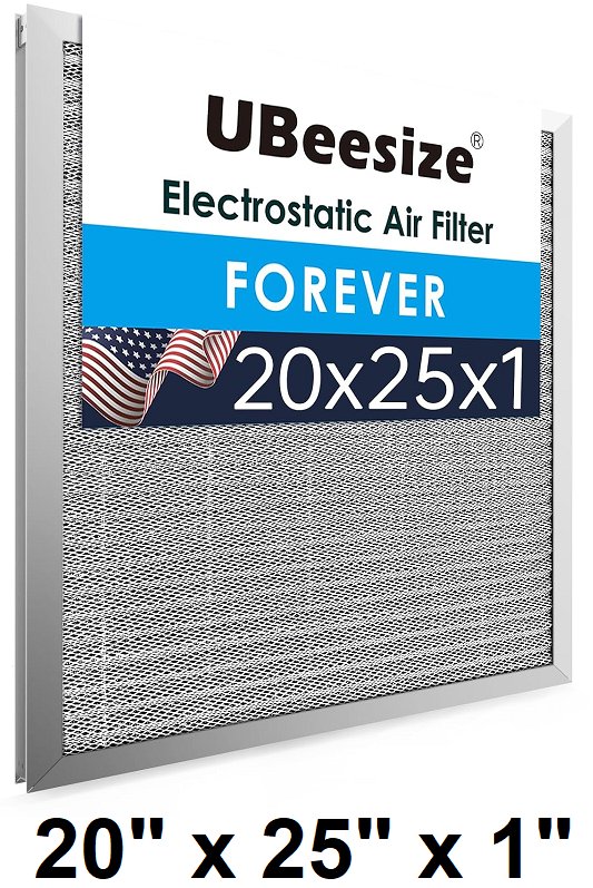 UBeesize Reusable MERV 8 Electrostatic HVAC AC Furnace Air Filter - 20" x 25" x 1" - Silver