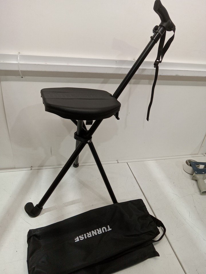 Turnrise ADJUSTABLE Portable Walking Cane with Seat - 38" to 43" - 330lbs max - black