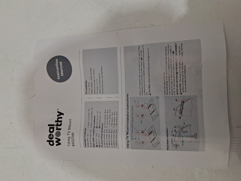 dealworthy tilting tv wall mdealworthy tilting tv wall mount with 12° tilt - 120lbs max - fits 40"-90" tv's- black (model: 45023w/xd6253)ount with 12° title - 120lbs max - fits 40"-90" tv's- black (model: 45023w/xd6253)