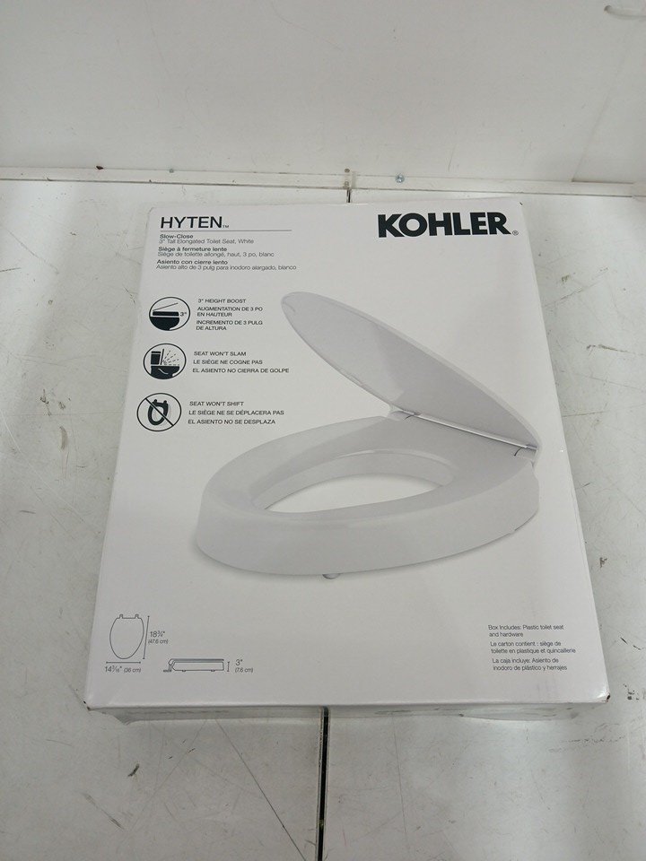 KOHLER HYTEN ELEVATED Quiet-Close elongated toilet seat - 3" - WHITE (MODEL: 25875-0)