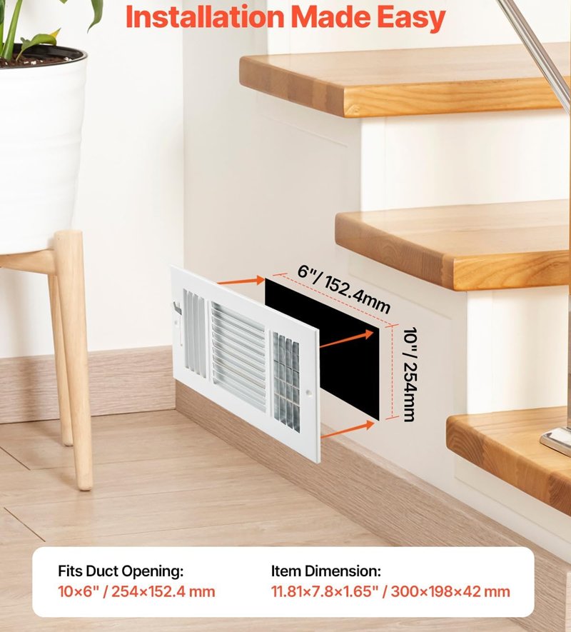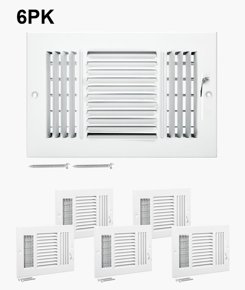 6PK HVAC 3-Direction Iron Vent Grilles for Home/Office Wall & Ceiling - 6" x 10" - White - (Model-3sw1006-6pk)