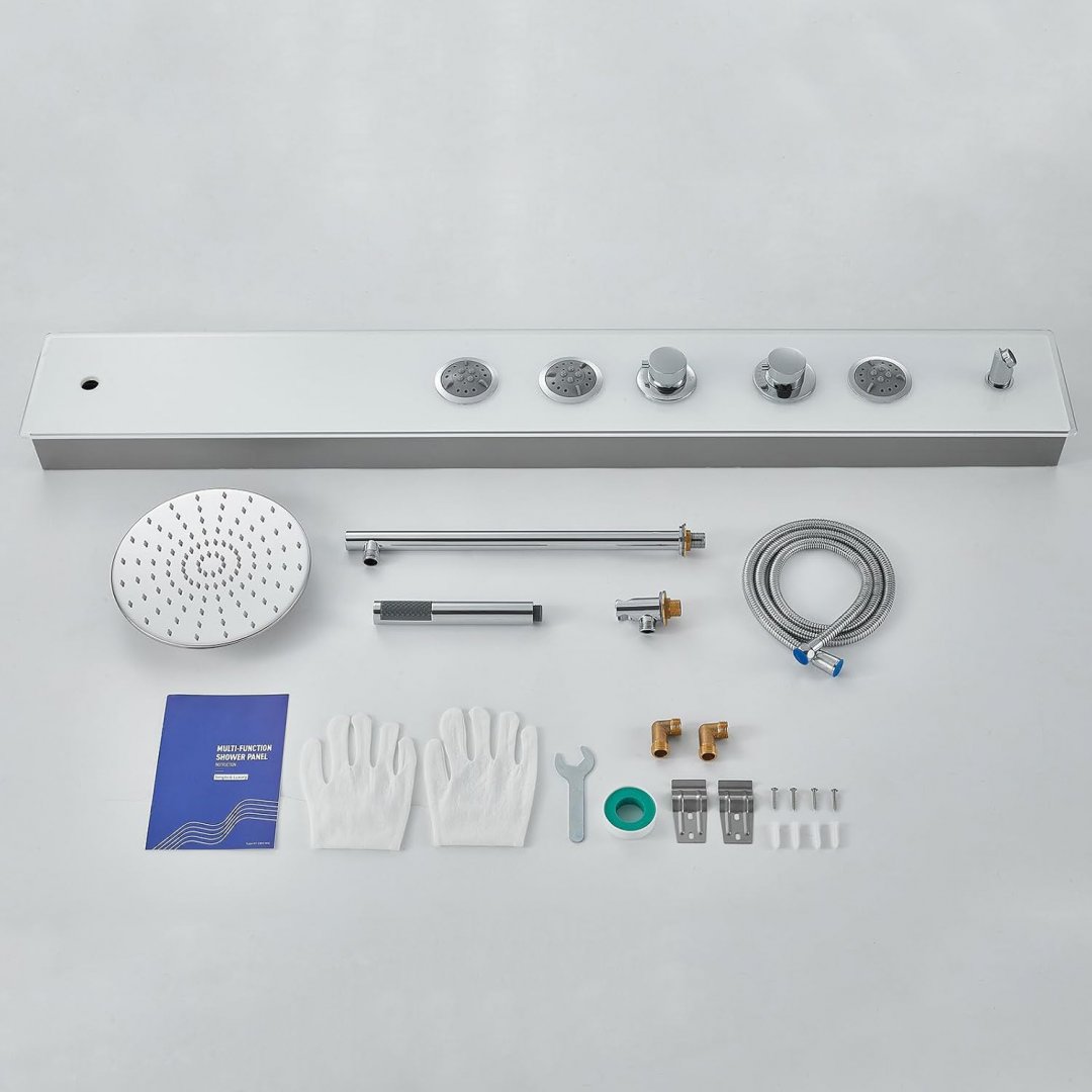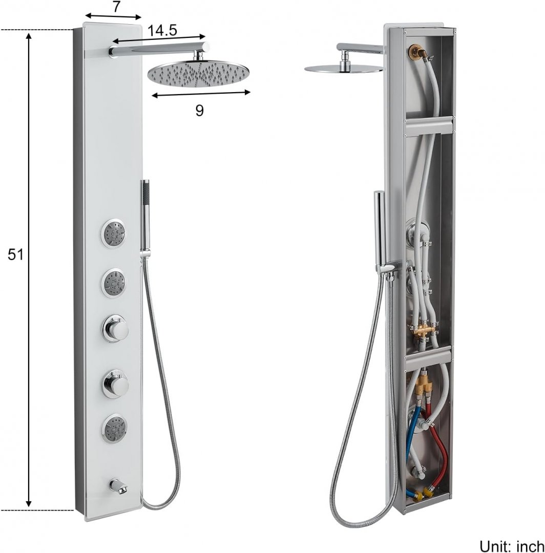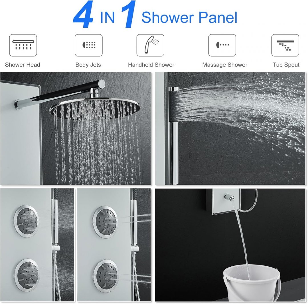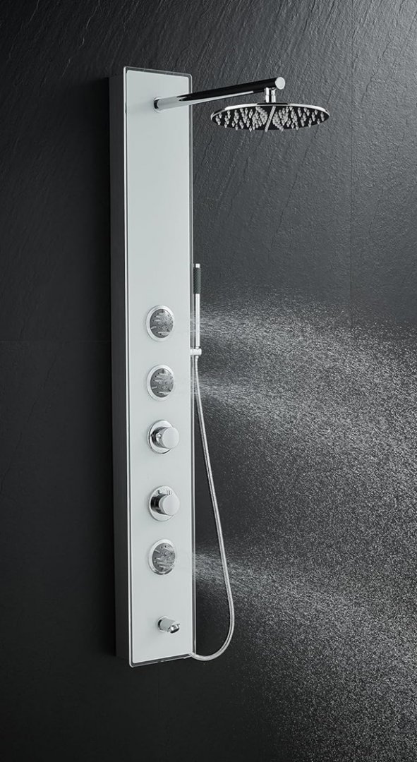 simple & luxury 4-in-1 shower panel tower system - 51" tall, 9" shower head - white/glass - (model: dt-2305)