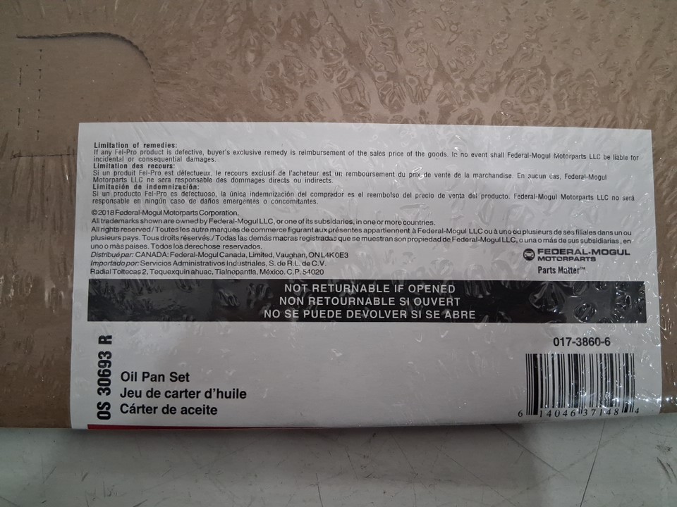 fel-pro replacement engine oil pan gasket - fits gm 6.7l, 6l, 5.7l, 5.3l, 4.8l - (model: os30693r)