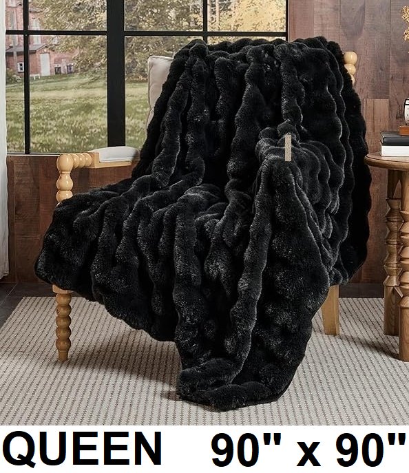 LOTUS KAREN SOFT FLUFFY BLANKET - queen SIZE 90" X 90" - BLACK