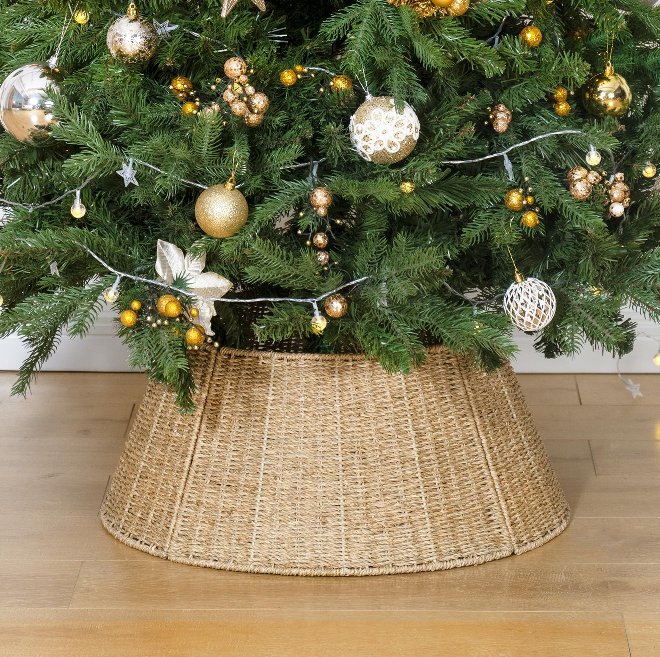 StorageWorks Handcrafted Seagrass Christmas Tree Skirt/Collar/Base Cover for Artificial Trees - 42" - Natural