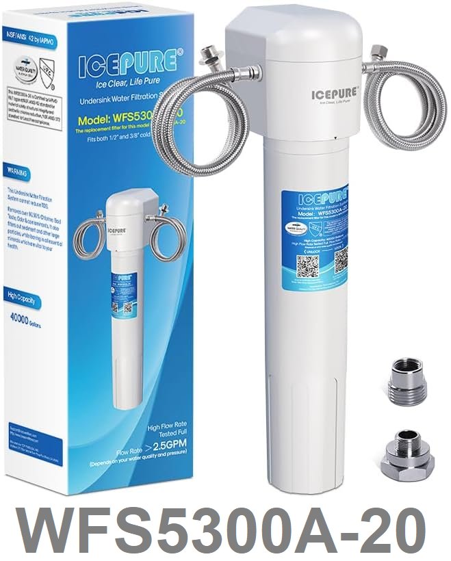 icepure under the sink water filtration system with ultra high capacity - NSF/ANSI CAN372 & 42 Certified, Direct Connect Drinking Faucet, Removes Chlorine, Odor, Heavy Metals - white (model: wfs5300a-20)