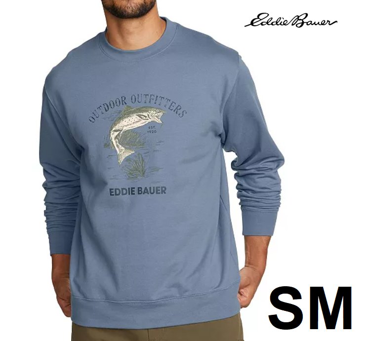 MENS Eddie Bauer Graphic Crewneck - SMALL - BLUE/FISH - (STYLE:1819535)