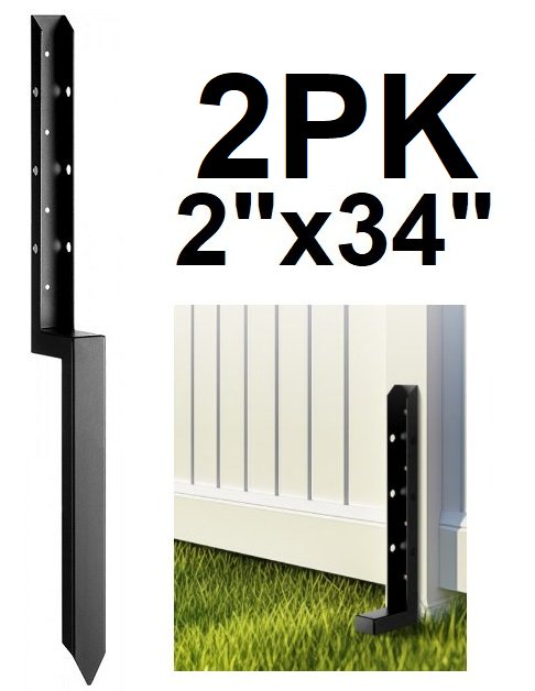 2pk heavy duty fence post anchor ground spike repair kit - 34" x 2" - black