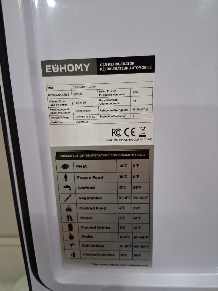 euhomy portable car refrigerator with app control - 18l - 12v - from -4° to 68°F - black/grey (model: cfc-18/CF004-18BL-CAEH)
