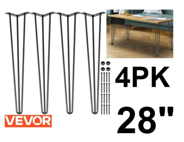 4pk vevor heavy duty hairpin table legs - 28" - black - (model: TK6713-28)