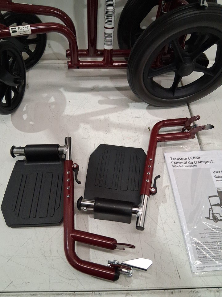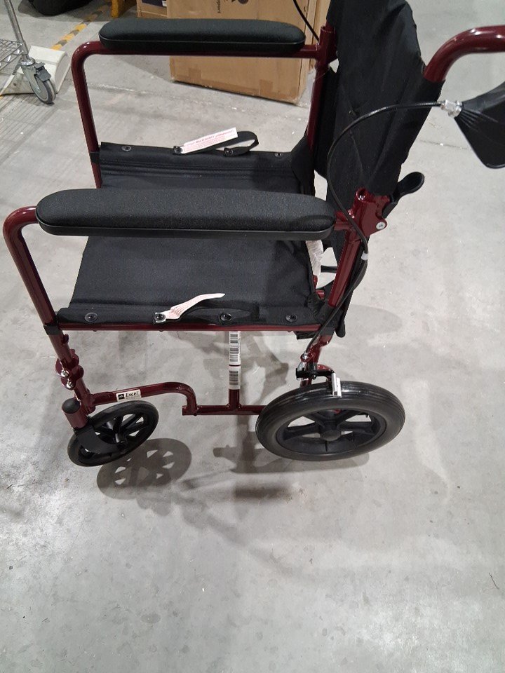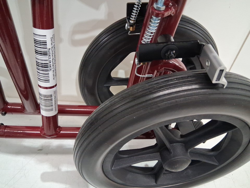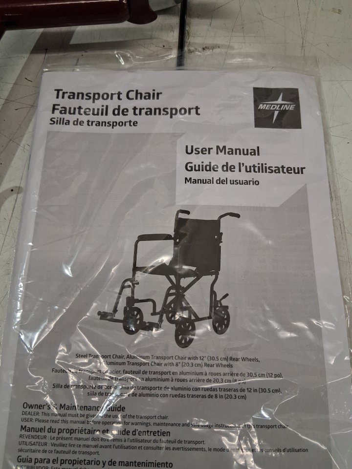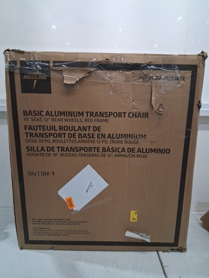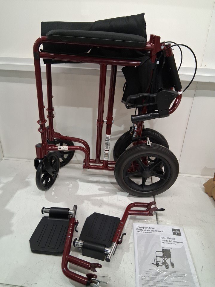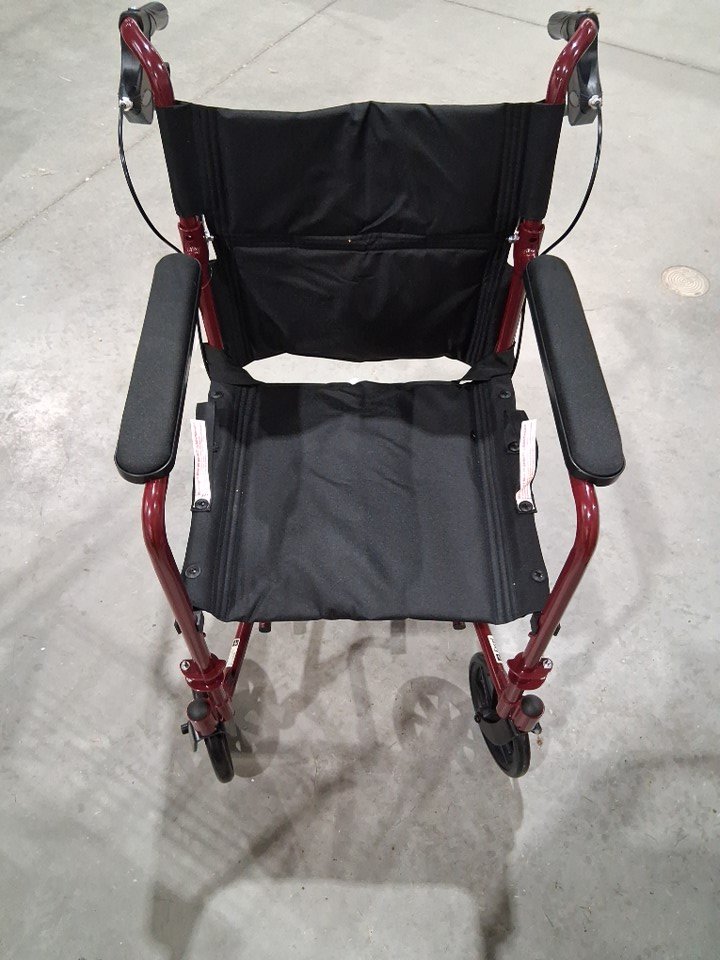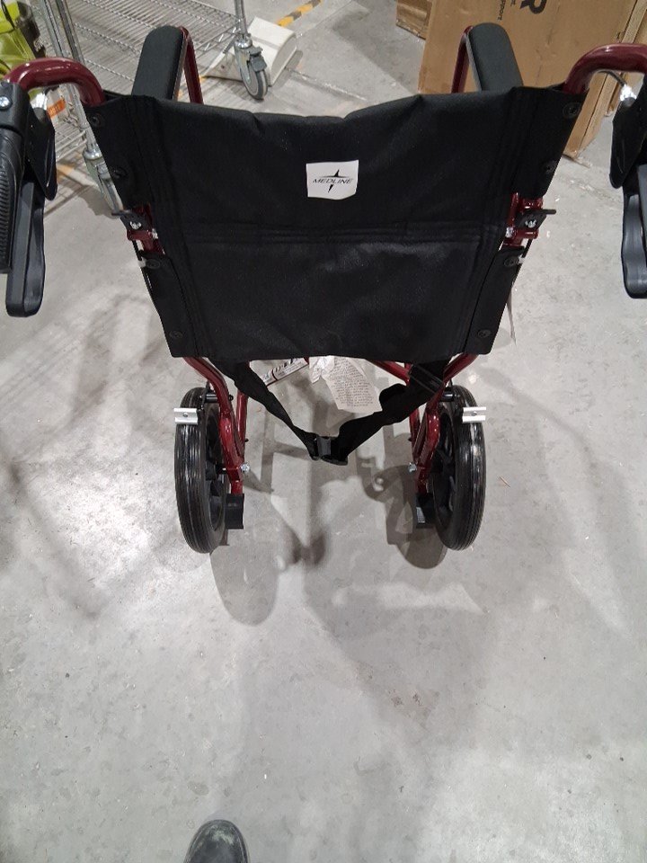 MEDLINE BASIC ALUMINUM TRANSPORT WHEELCHAIR - 19" - 12" REAR WHEELS WITH BRAKES - 300lbs capacity - RED (MODEL: MDS808210ARE)