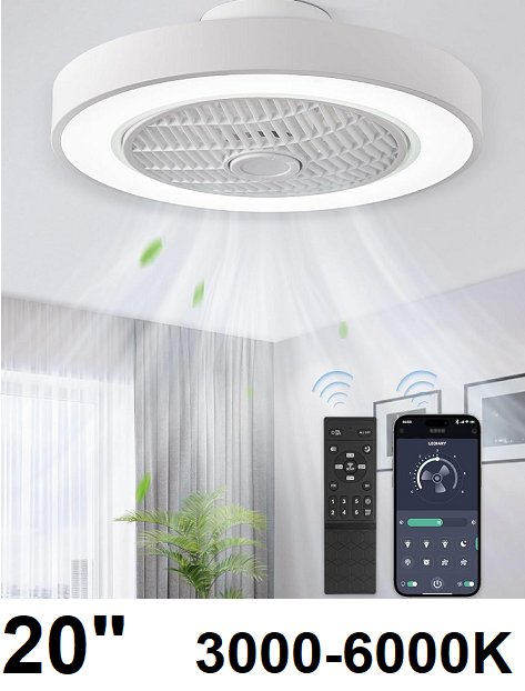LEDIARY Low Profile Led Bladeless Ceiling Fans With Lights - 6 WIND SPEED- 3000-6000k- 20" - WHITE