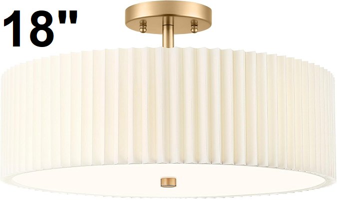 Audickic Semi Flush Mount PLEATED Ceiling Light - 18" - GOLD