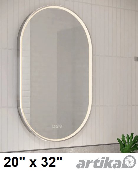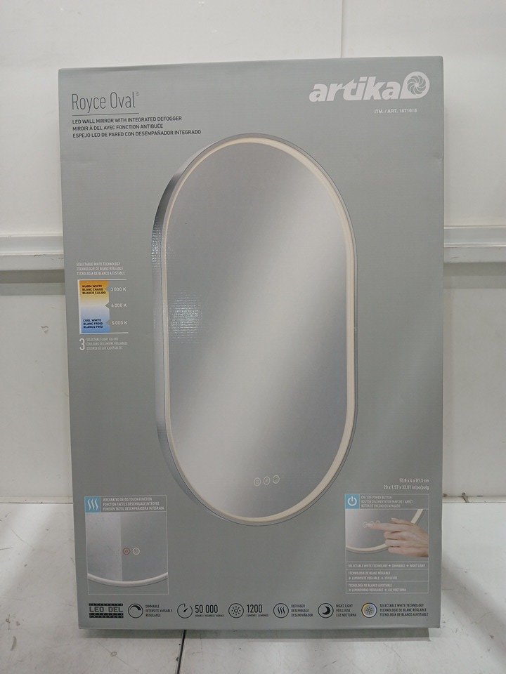 Artika Royce Oval LED Mirror with Integrated Defogger & 3 Light Colors (3000K-5000K) - 20" x 32" - silver (model: 1671618)
