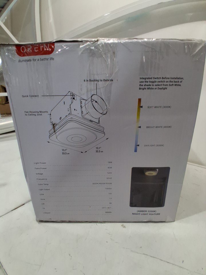 OREiN Bathroom Exhaust Fan with Light & Humidity Sensor - 3000k, 4000k, & 5000k with a night light at 2200k - white (model: ol1700376)