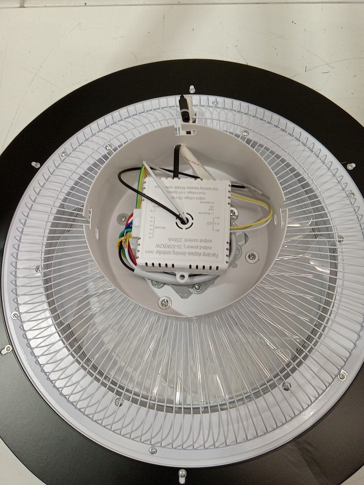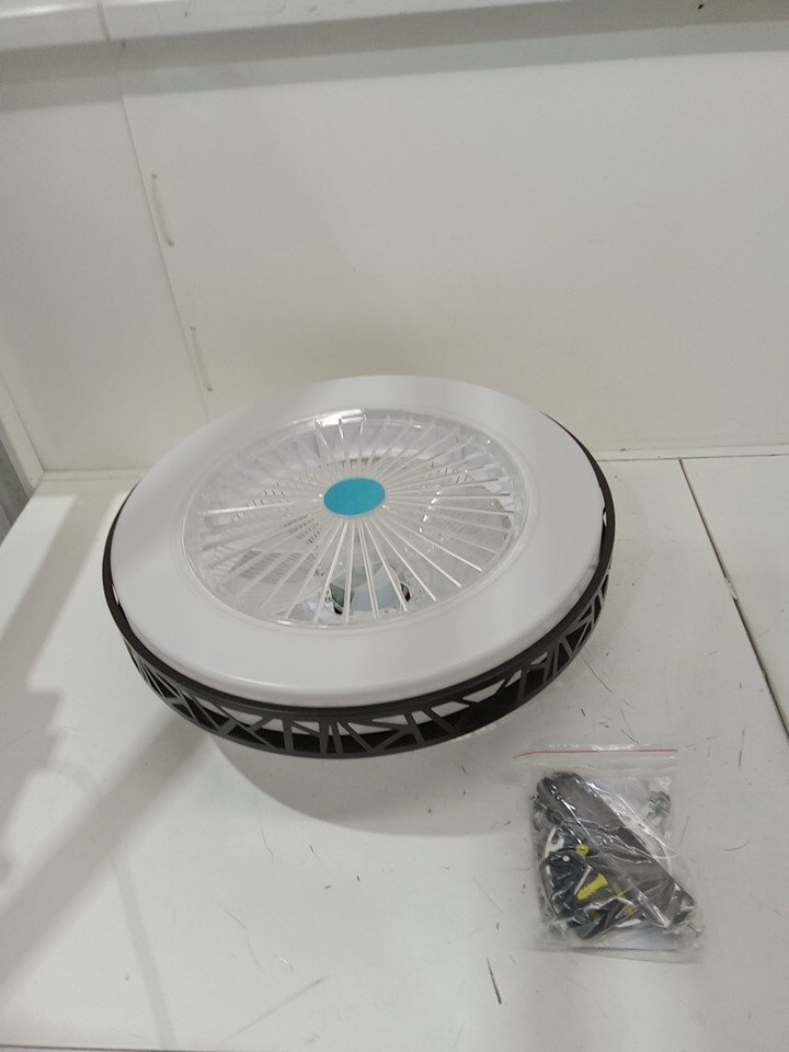 flush-mount enclosed ceiling fan with led lights & remote control - 19"x6" - 3000-6000k - white/black (model: HB-40)