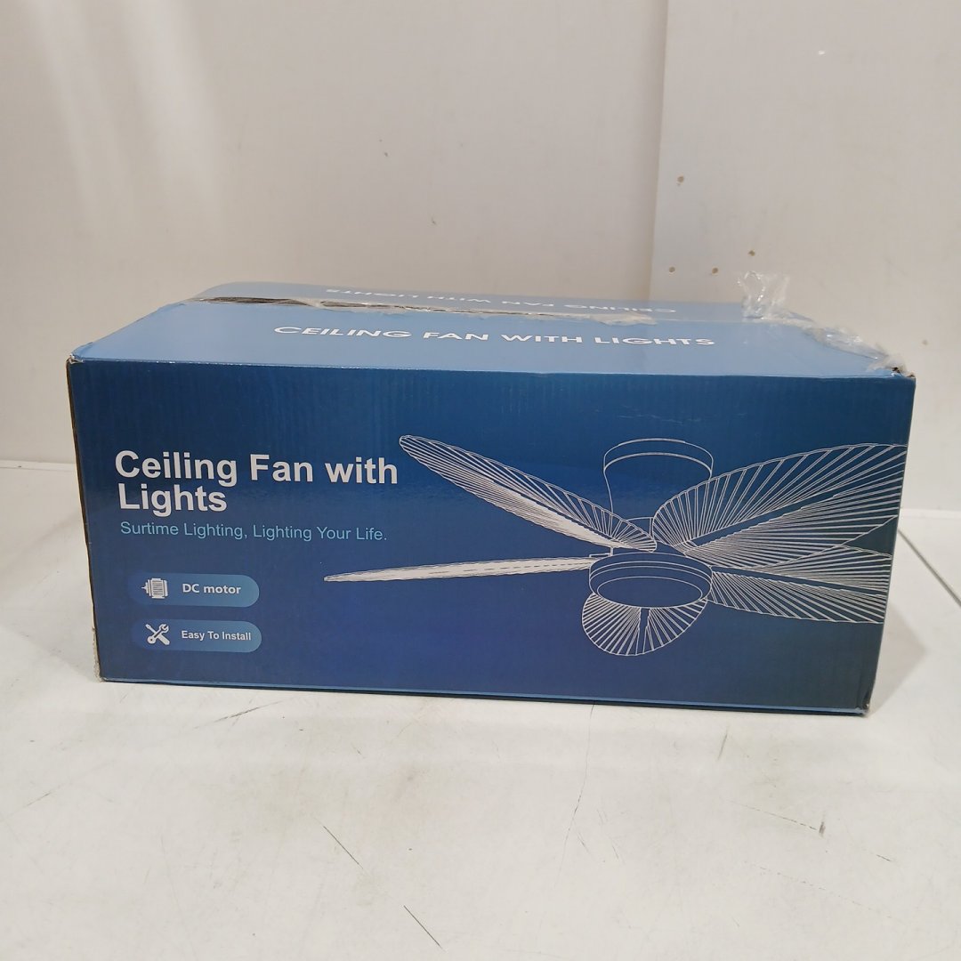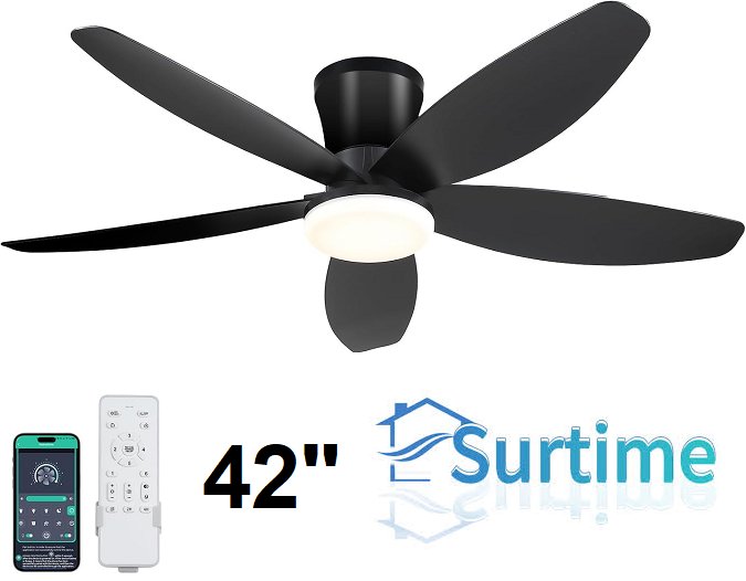 Surtime MODERN Palm Leaf Indoor/Outdoor Tropical Ceiling Fan with Lights Remote/APP Control - 42"- black (MODEL: 6669)