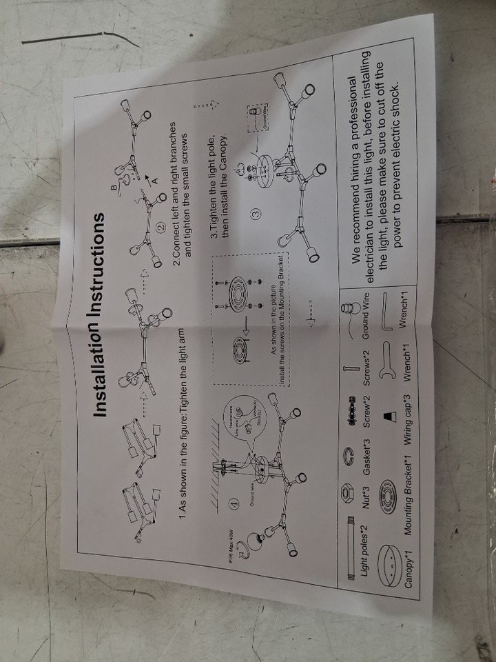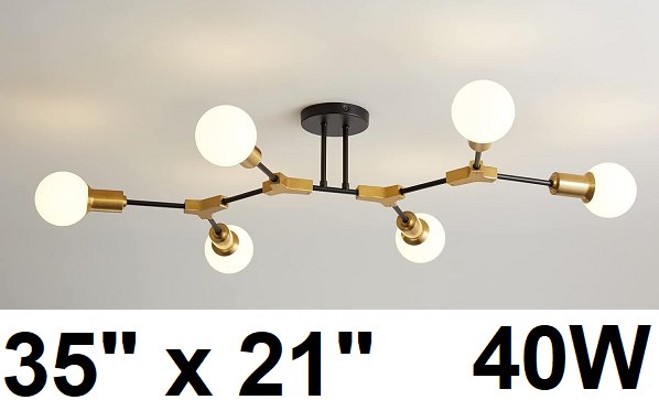 Epinl Modern Sputnik 6-Light Ceiling Light Fixture - 35" x 21" - 40w - e26 bulb - gold/black (model: jd8893-6)