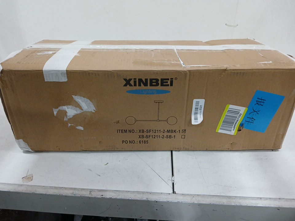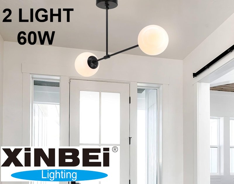 XiNBEi Lighting Semi Flush Light, 2 Light Globe CEILING LIGHT - 31" - Black/White - (Model- xb-sf1211-2-mbk-1)