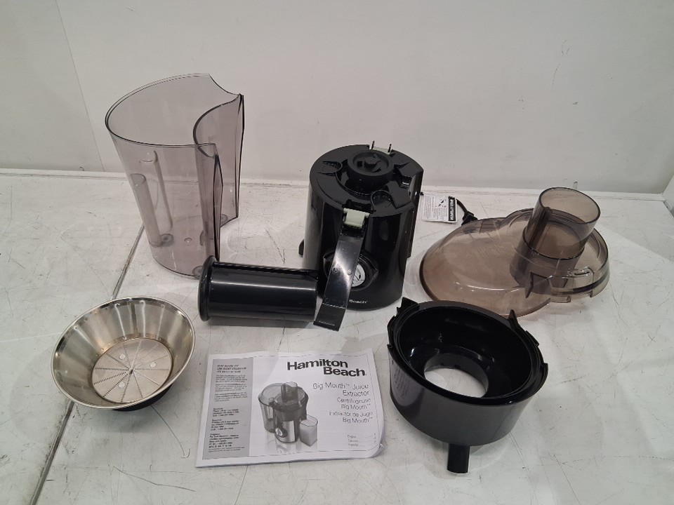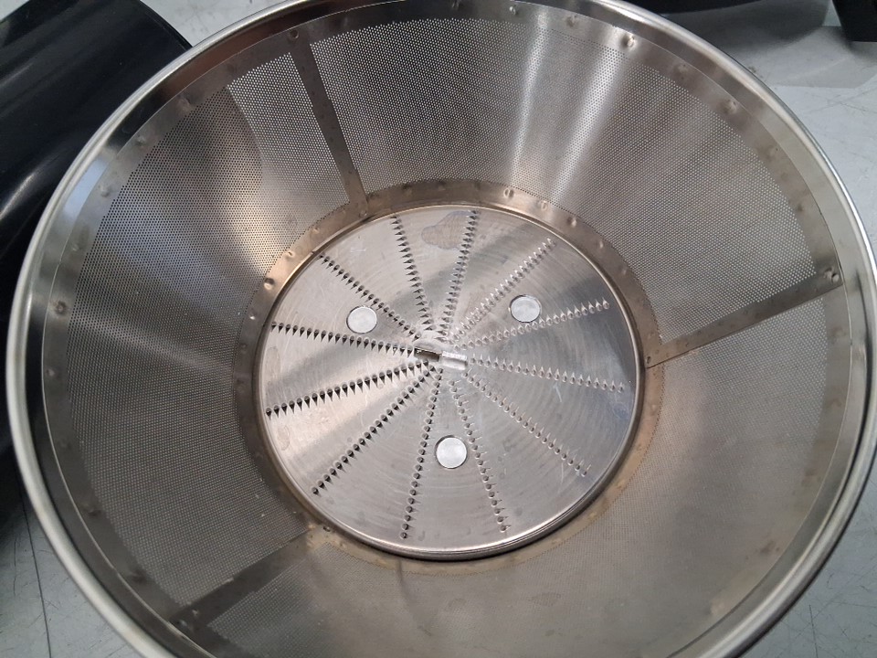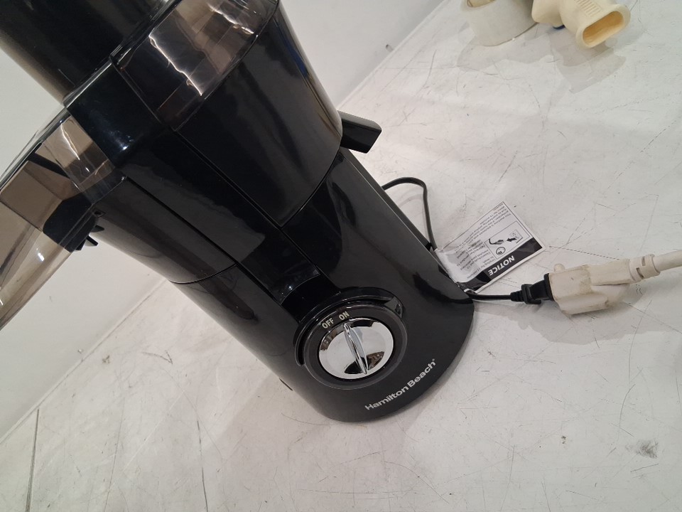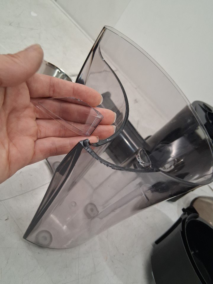 Liquid residue/marks on strainer basket, chipped piece on pulp container item was tested for power