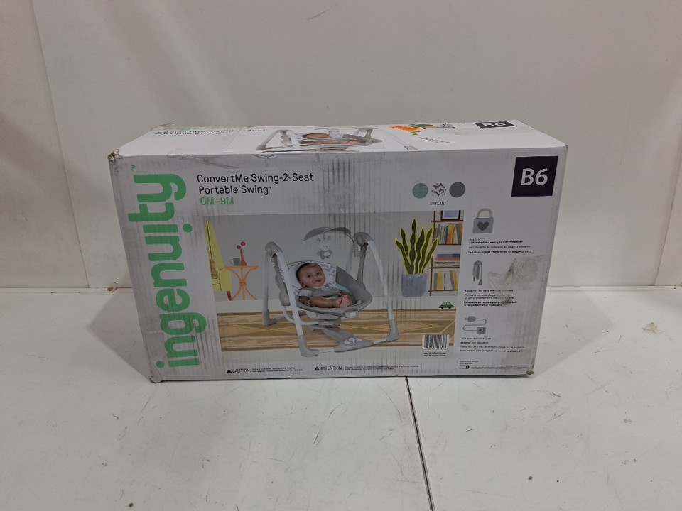Ingenuity 2-in-1 convertme compact portable baby swing & seat with vibrations & nature sounds - battery powered - 20lbs max- raylan theme/grey (model: ‎12189)