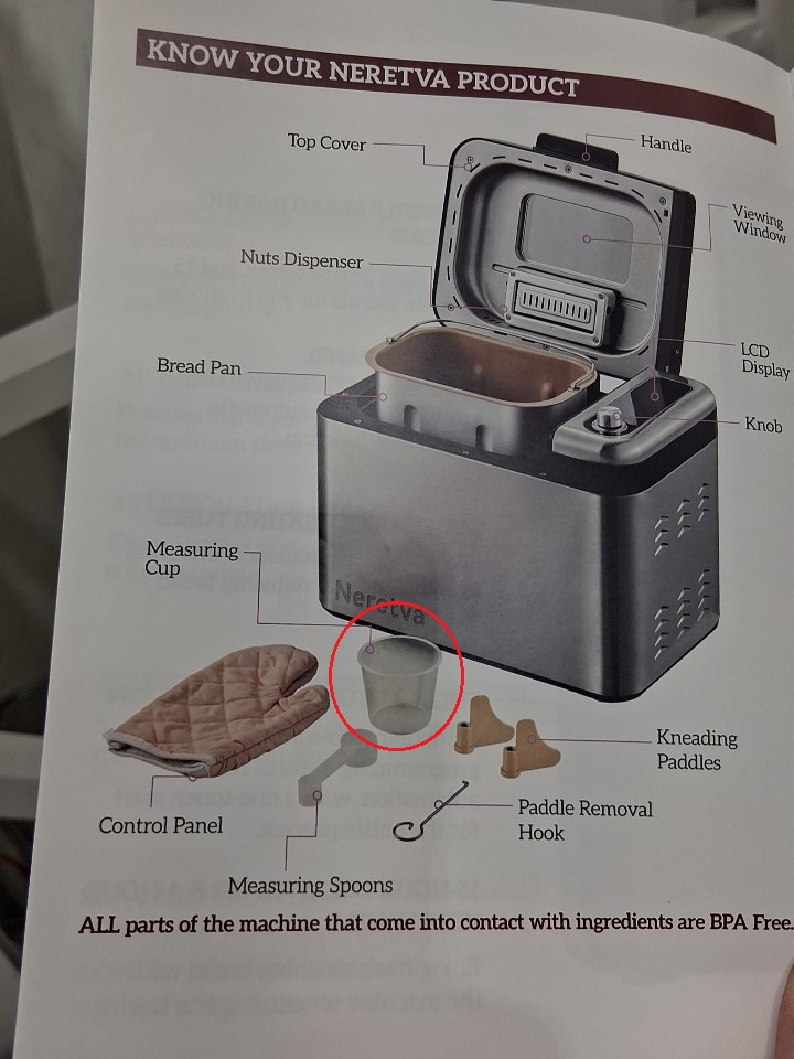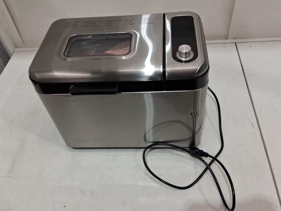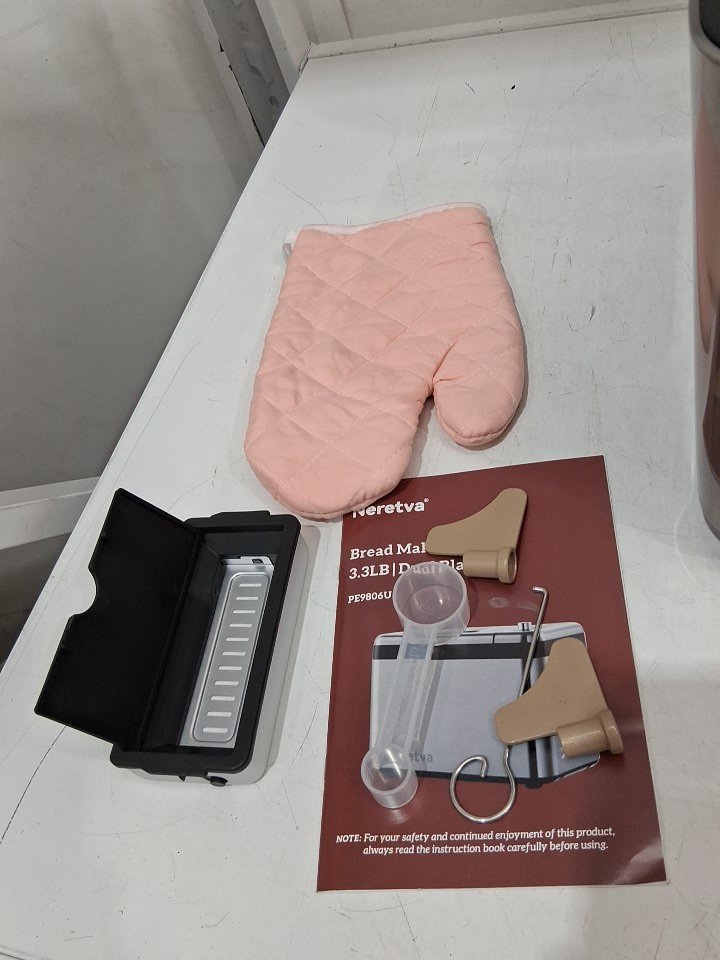 **Tested for power.** Item has a few minor markings in the bread pan, light scuffs on the exterior from previous gentle use, see photos. Item does not include a measuring cup, see photos.