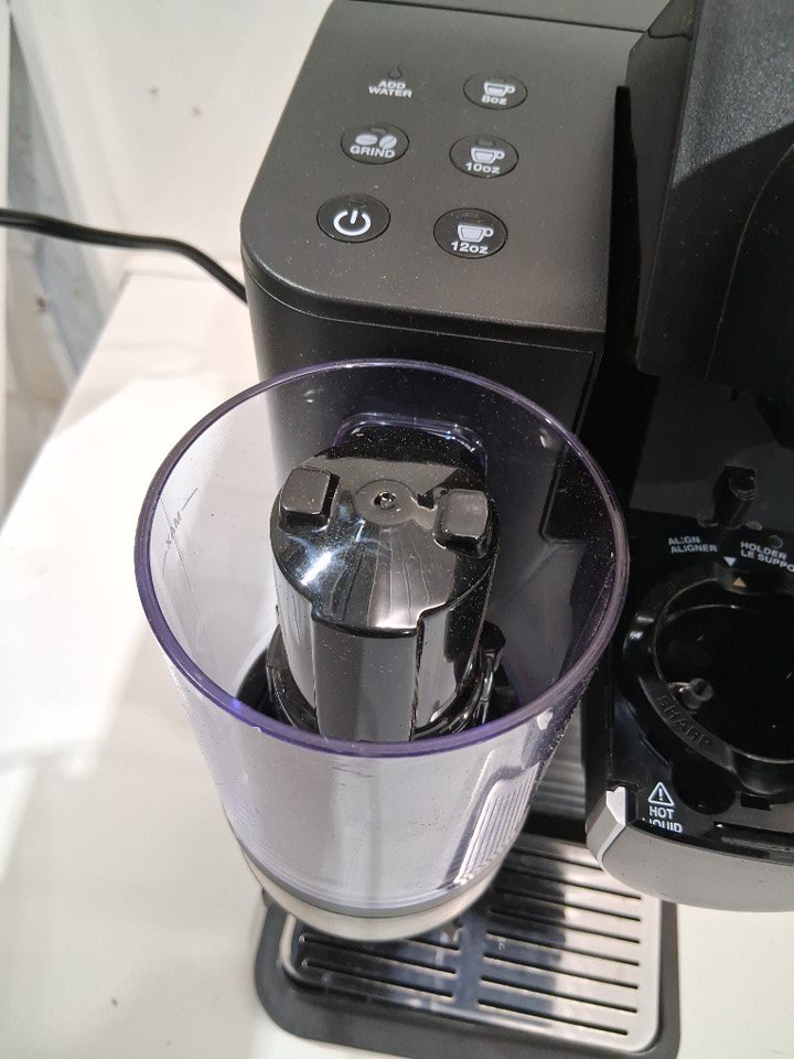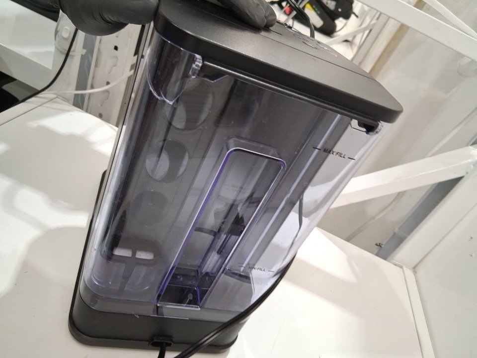 Tank has some light cracking at the top just below the max water level line Light dust and coffee smell from previous use. Tested for power only