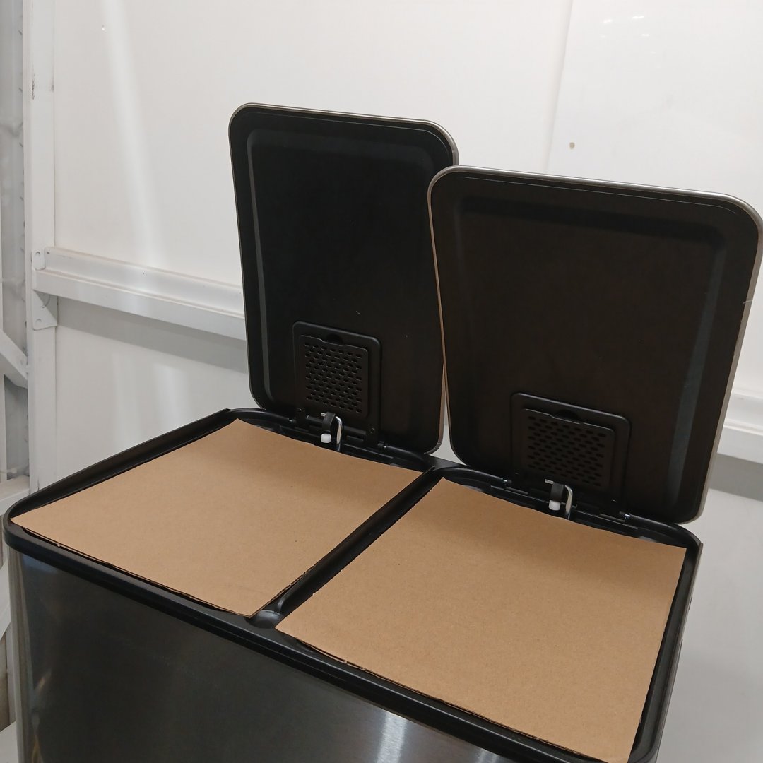 Right bottom side has a large dent, as well as the top of the lids have some scuffs. Lids still function as intended.