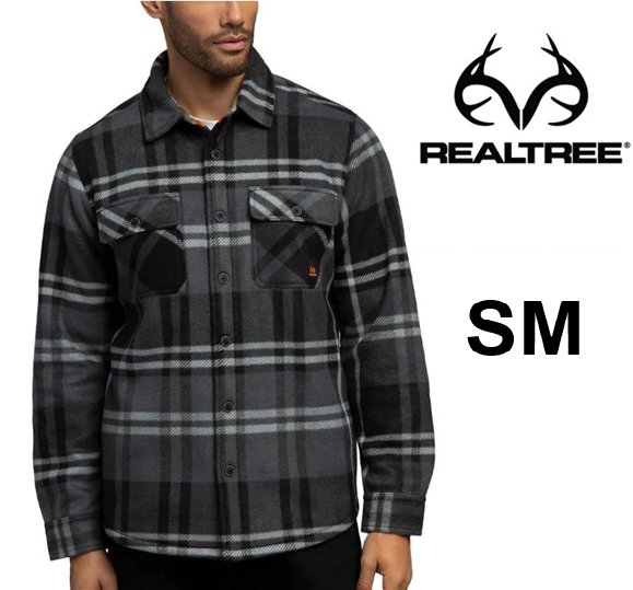 MEN'S REALTREE Long Sleeve Sherpa Lined Shirt Jacket - Small - black/grey plaid (style: 1630545)