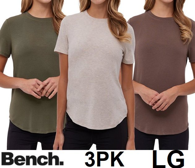 3PK Women's BENCH Comfort Crew Neck T-Shirts - large - Brown/Green/Beige (style: 2945481)