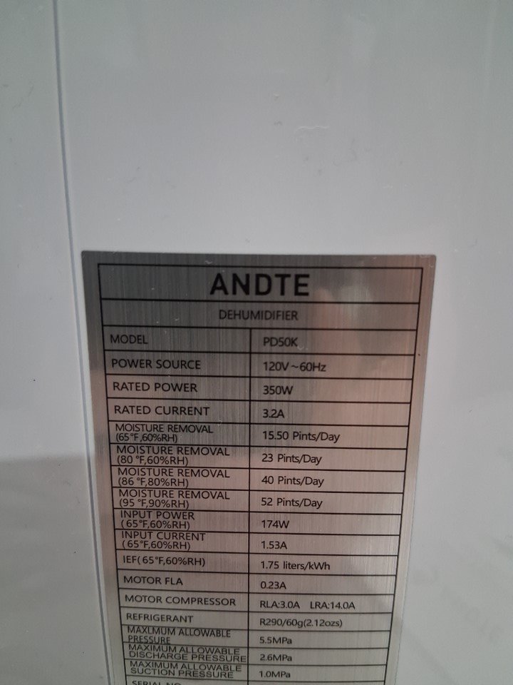 ANDTE 52 Pint Dehumidifier with Bucket and Drain Hose - COVERS 4500 SQ.FT - WHITE (MODEL: PD50K)