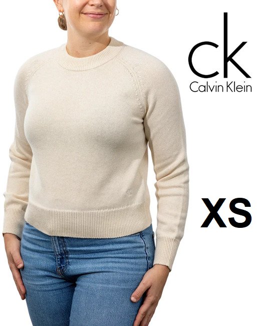 women's Calvin Klein Crew Neck knit Sweater - extra small - cream (style:1907975)