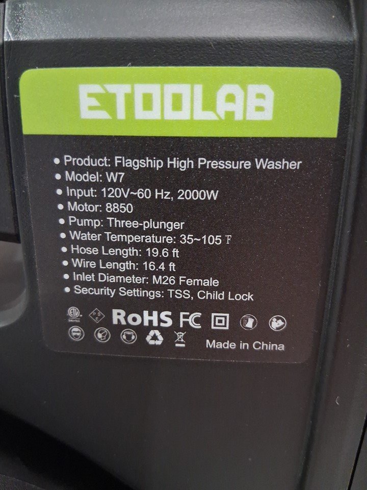 ETOOLAB ELECTRIC Pressure Washer - 4200PSI Max - 2.6GPM - 19.6ft hose - 120V - 60HZ - black/green (model: W7)