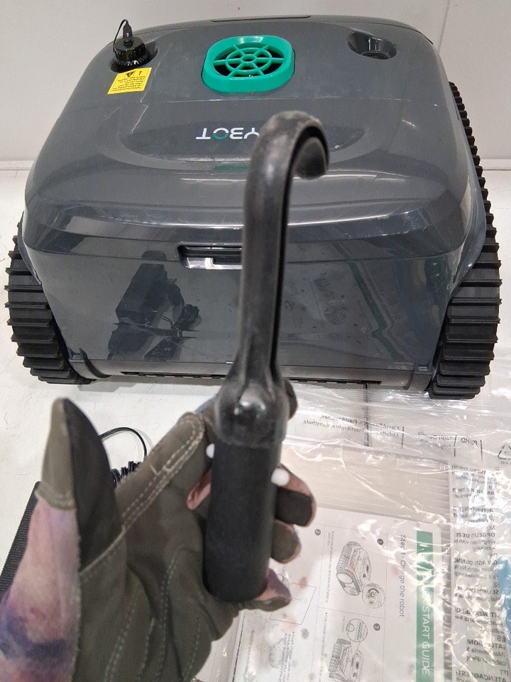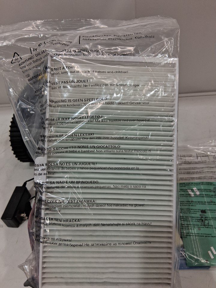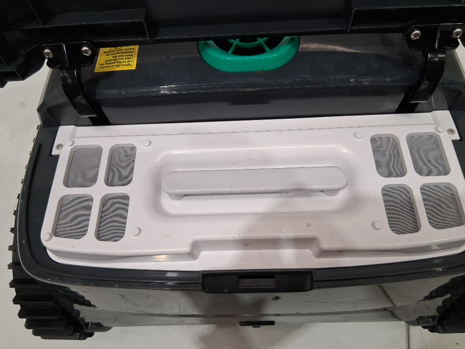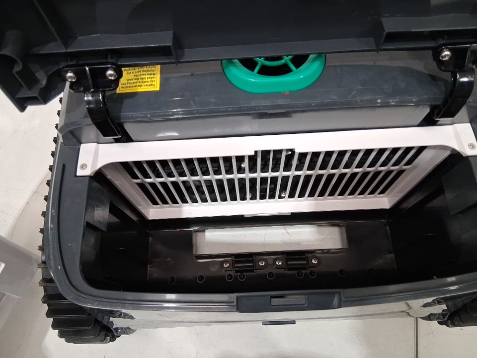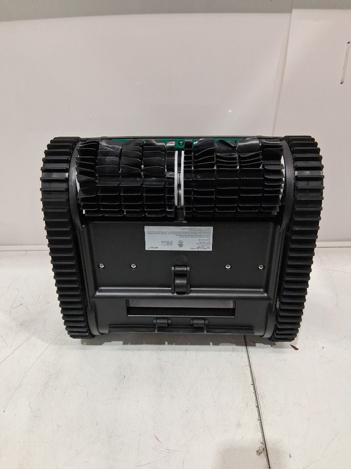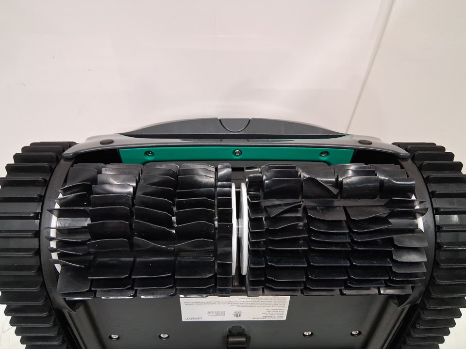 Item shows signs of light use. Dirt residue present throughout exterior of machine and inside filter. In addition, the scrubbers are slightly warped (see photos). Tested for power.