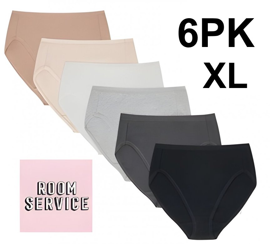 6PK WOMEN'S ROOM SERVICE CLASSIC FIT HI-CUT BRIEF - EXTRA LARGE - ASSORTED (MODEL: 2964663)