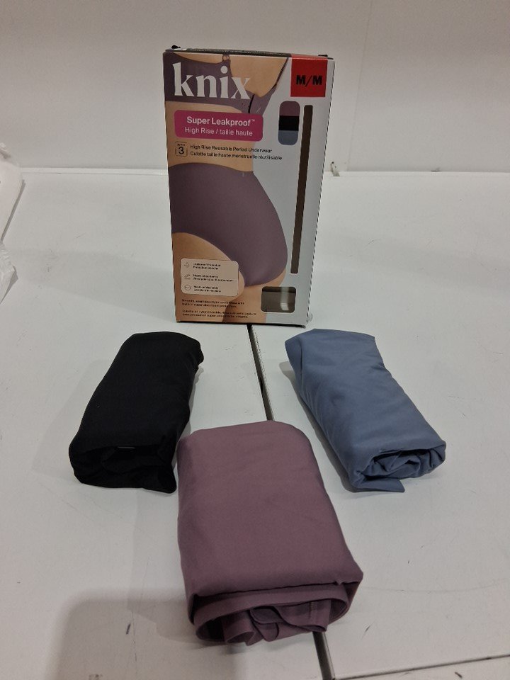 3pk Women's Knix Super Leakproof Reusable Period Bikini Underwear - medium - black/blue/purple (style: 2945521)