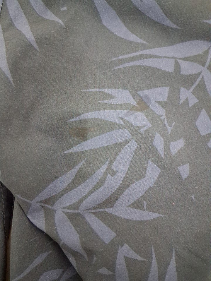 There are two small stain marks on the back of the bathing suits right side leg, it looks like the stains will come out after being washed.