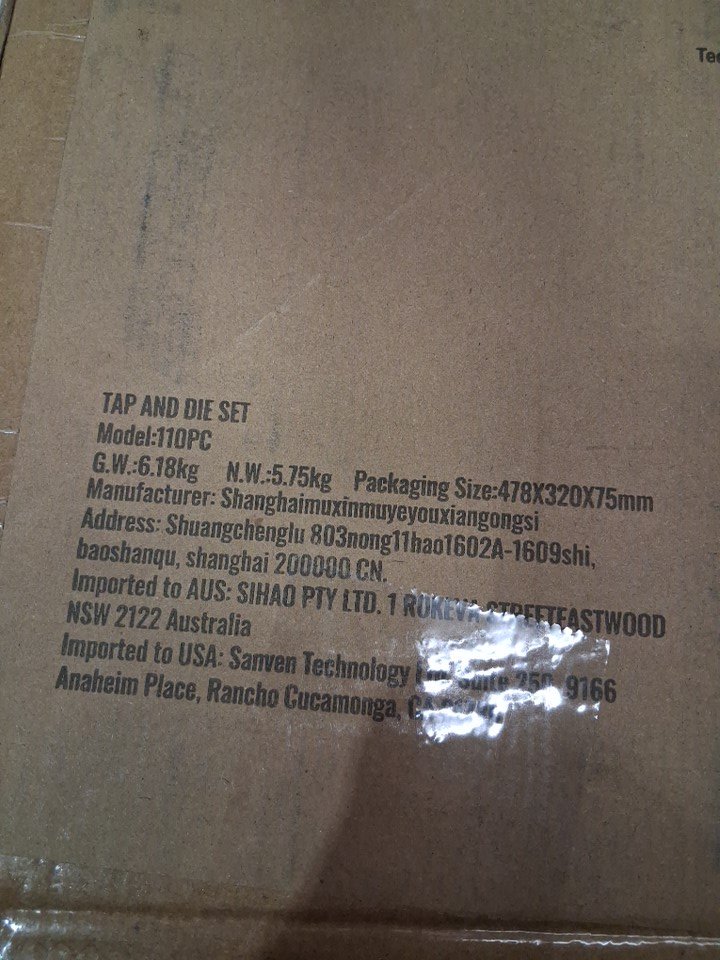 110pc VEVOR Tap and Die Set Threading Tool - Metric Size M2 to M18 - black (MODEL: 110pc)