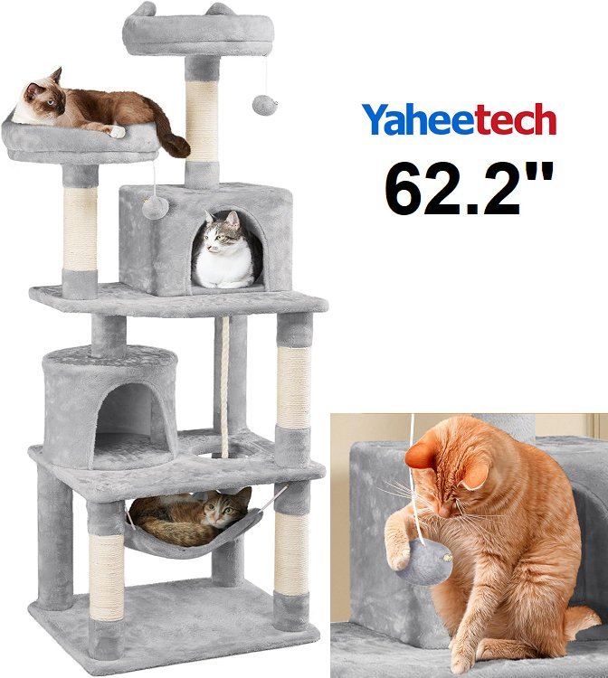 YAHEETECH Cat Tree Cat Towers Cat Condo with Platform - 62.2" - light grey (model: 593122)