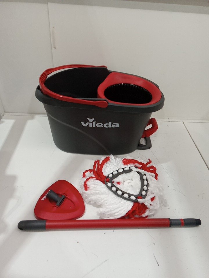 Vileda EasyWring Spin Mop Bucket Floor Cleaning System with Power Mop Head and extendable handle - red/grey (model: 172880/ 10683010609981)