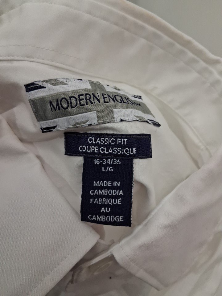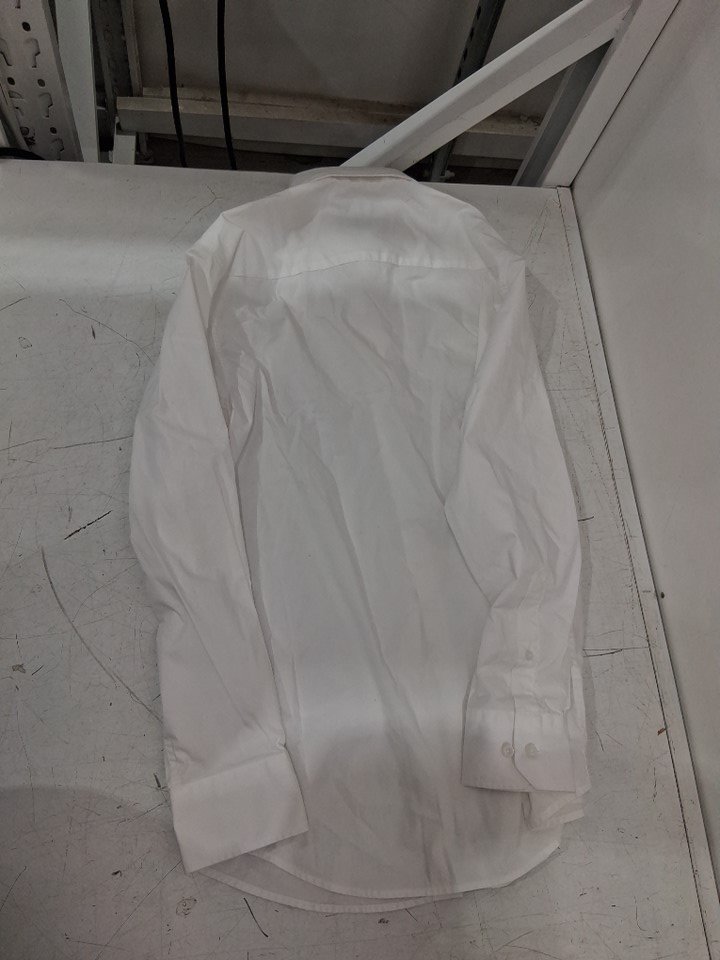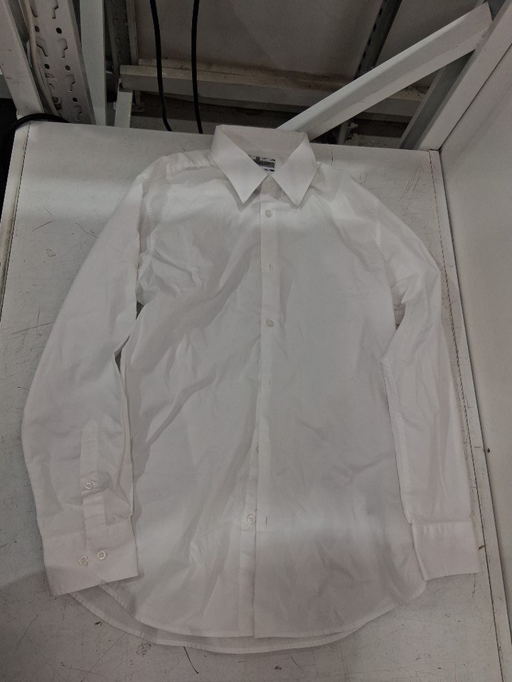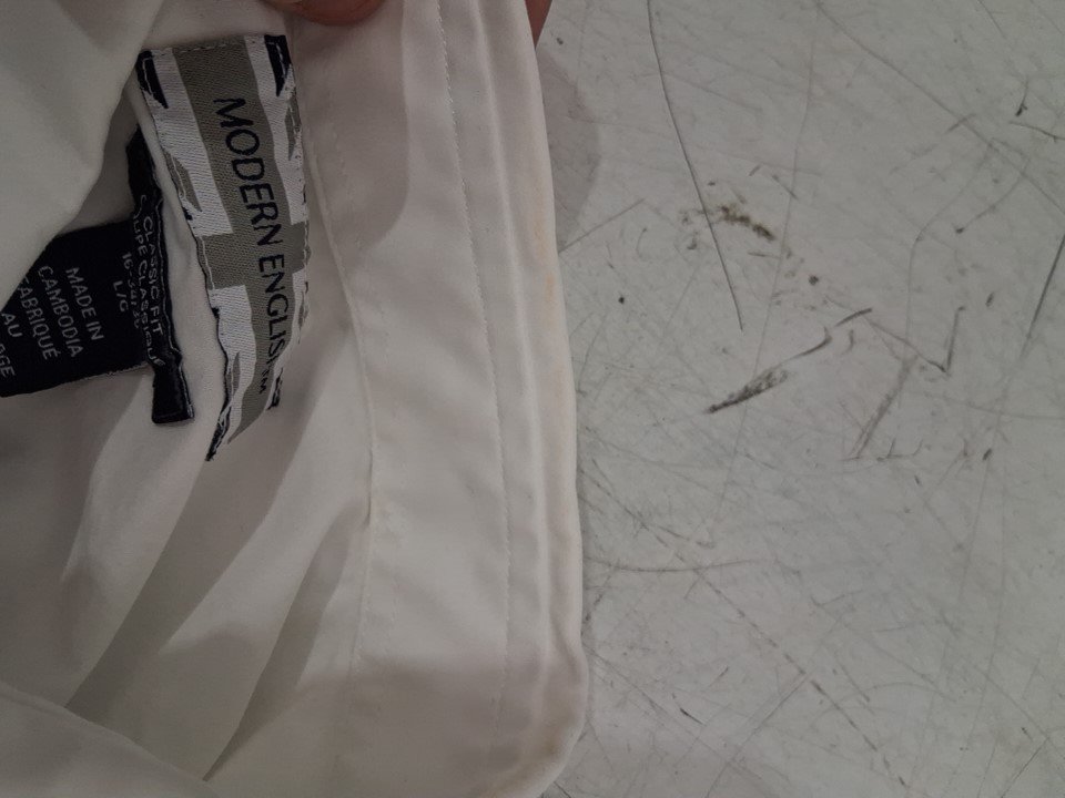 There is a faint orange scuff mark on the collar of the shirt due to shipping and handling. It will not be that noticeable when the shirt is being worn and may come out after being washed.