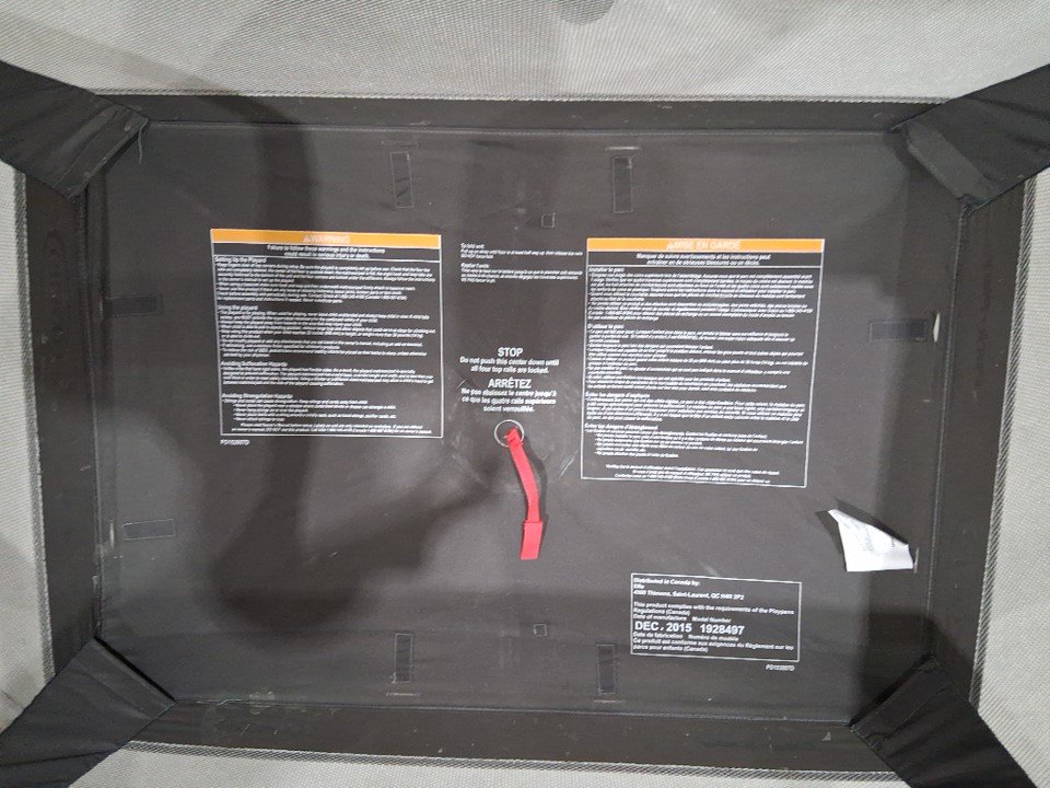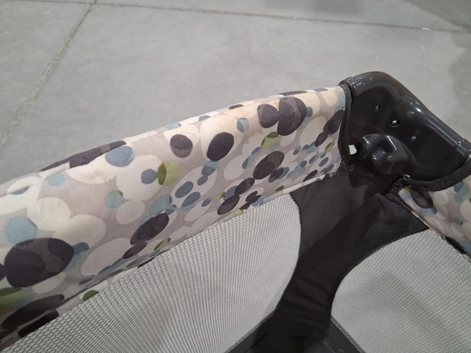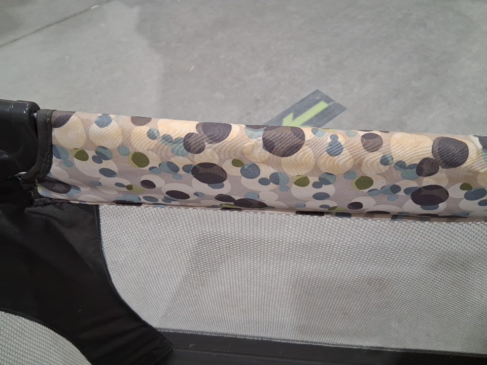 the railing around the pen is stained but can be cleaned as well as the case that holds the pen closed is dirty (see photos)