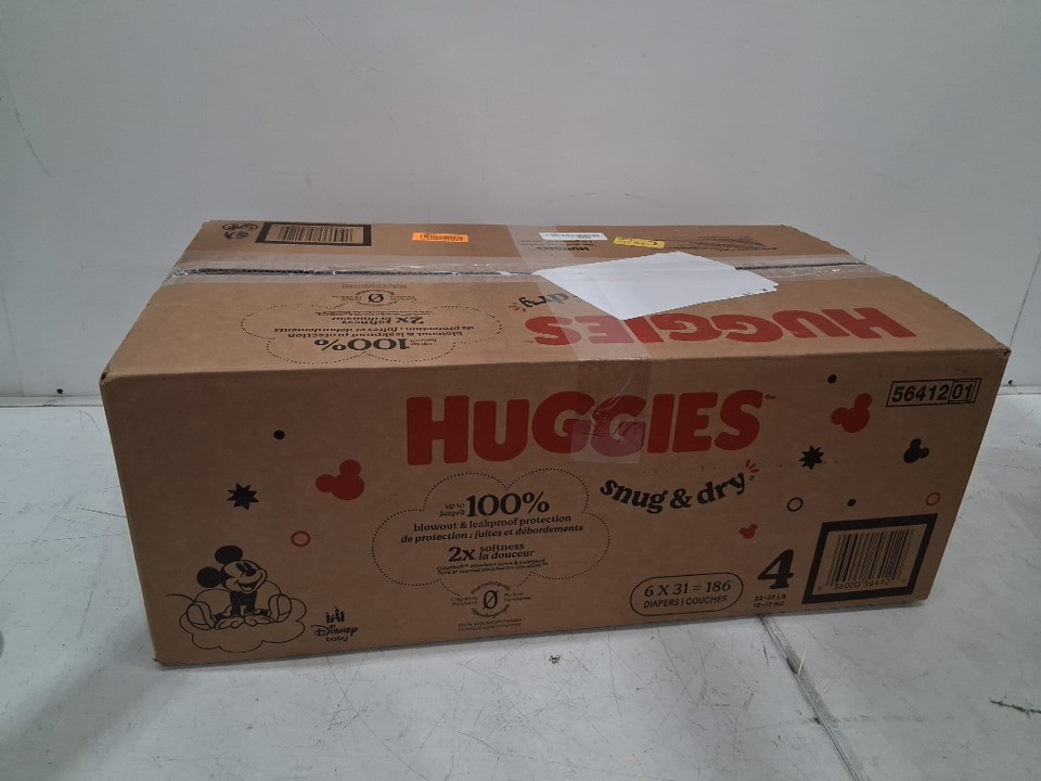 186pk huggies snug and dry diapers - size 4 - 22lb to 37lb - disney mickey mouse